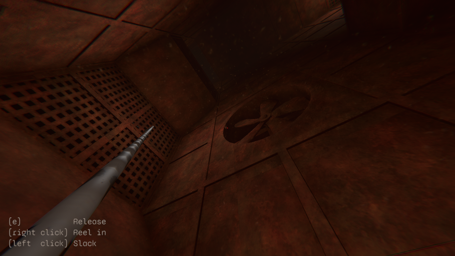 - [left click] While aiming at grate - fire grapple hook